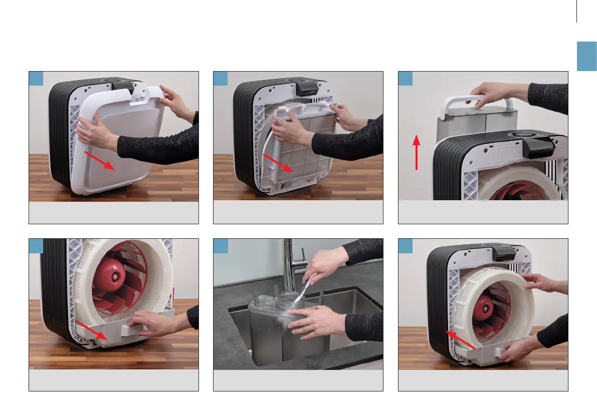 Nettoyez le réservoir d’eau et le bac à eau. Insérez le bac à eau avec le tambour dans