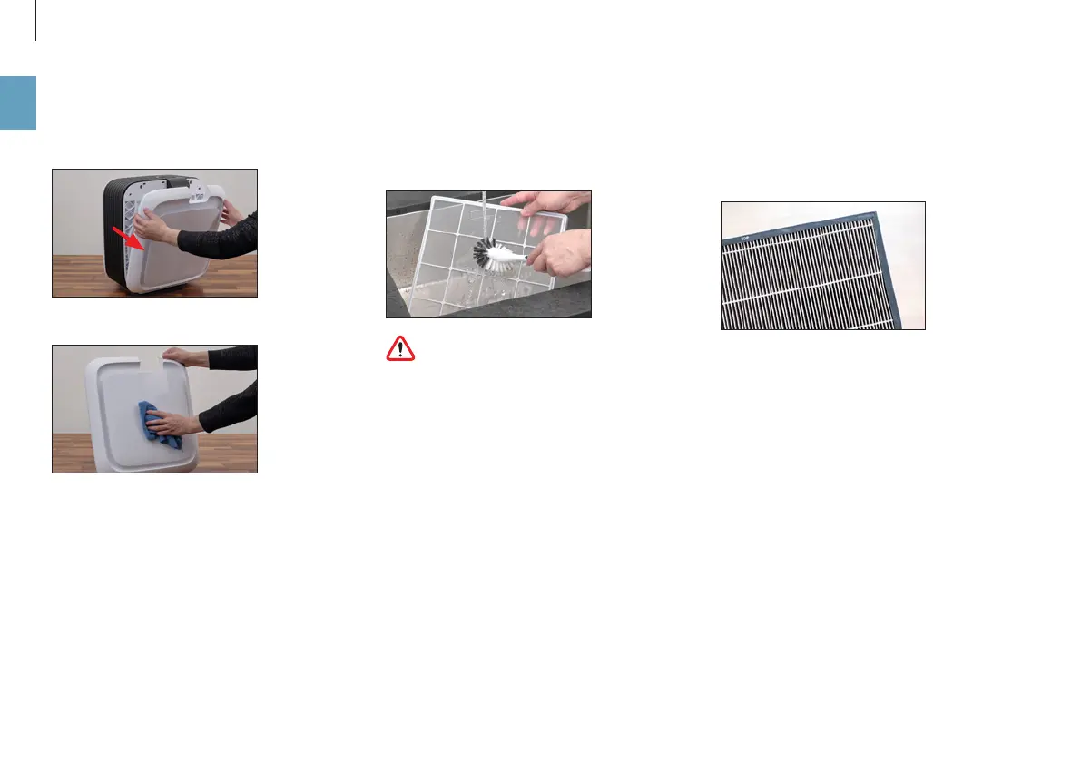 Limpie el filtro previo con la aspiradora o con un ce-