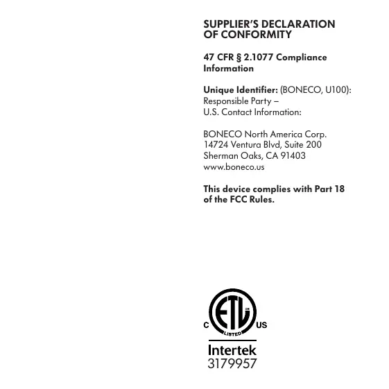 Unique Identifier: (BONECO, U100):