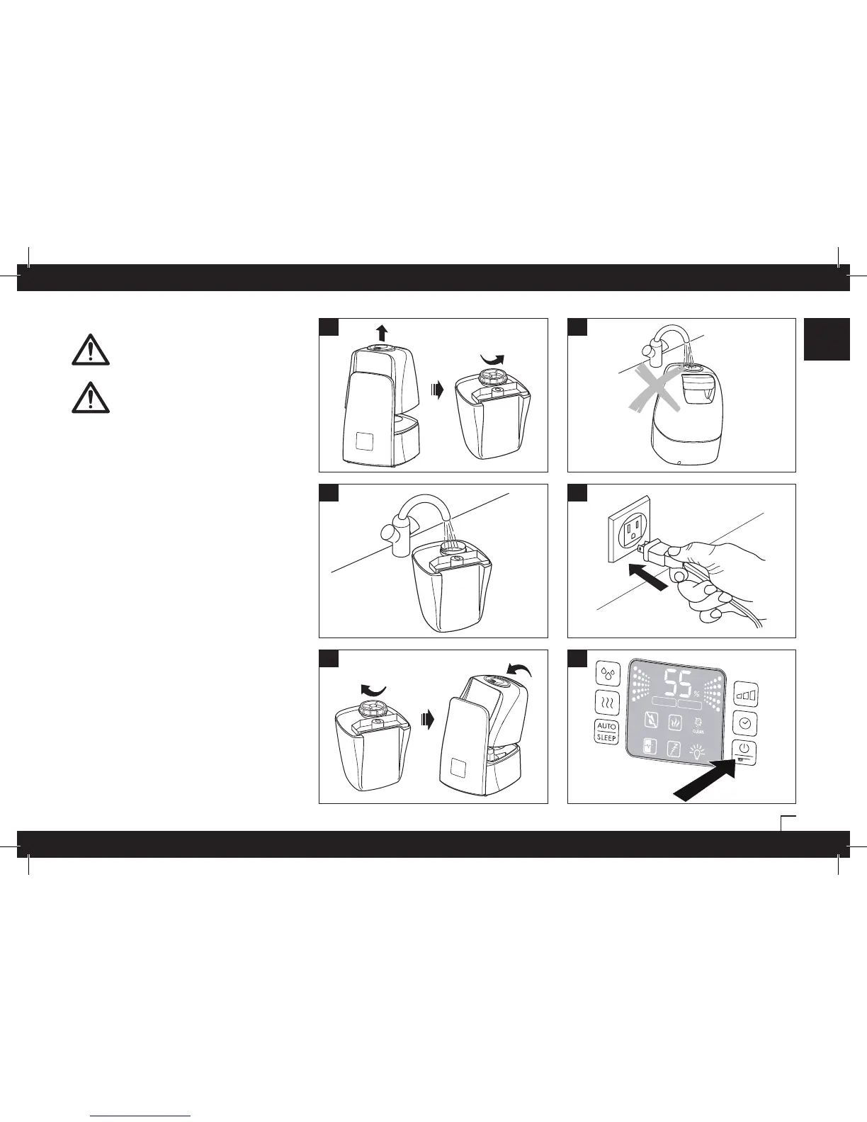 • Do not pour water into the mist outlet of the appliance