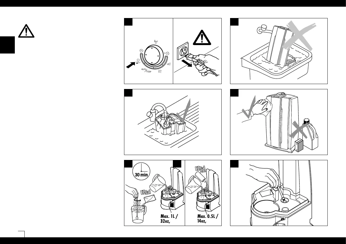 • Nettoyez régulièrement le réservoir d’eau et la base.