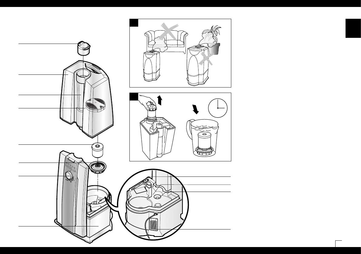 • Do not place the humidifier directly next to a heating