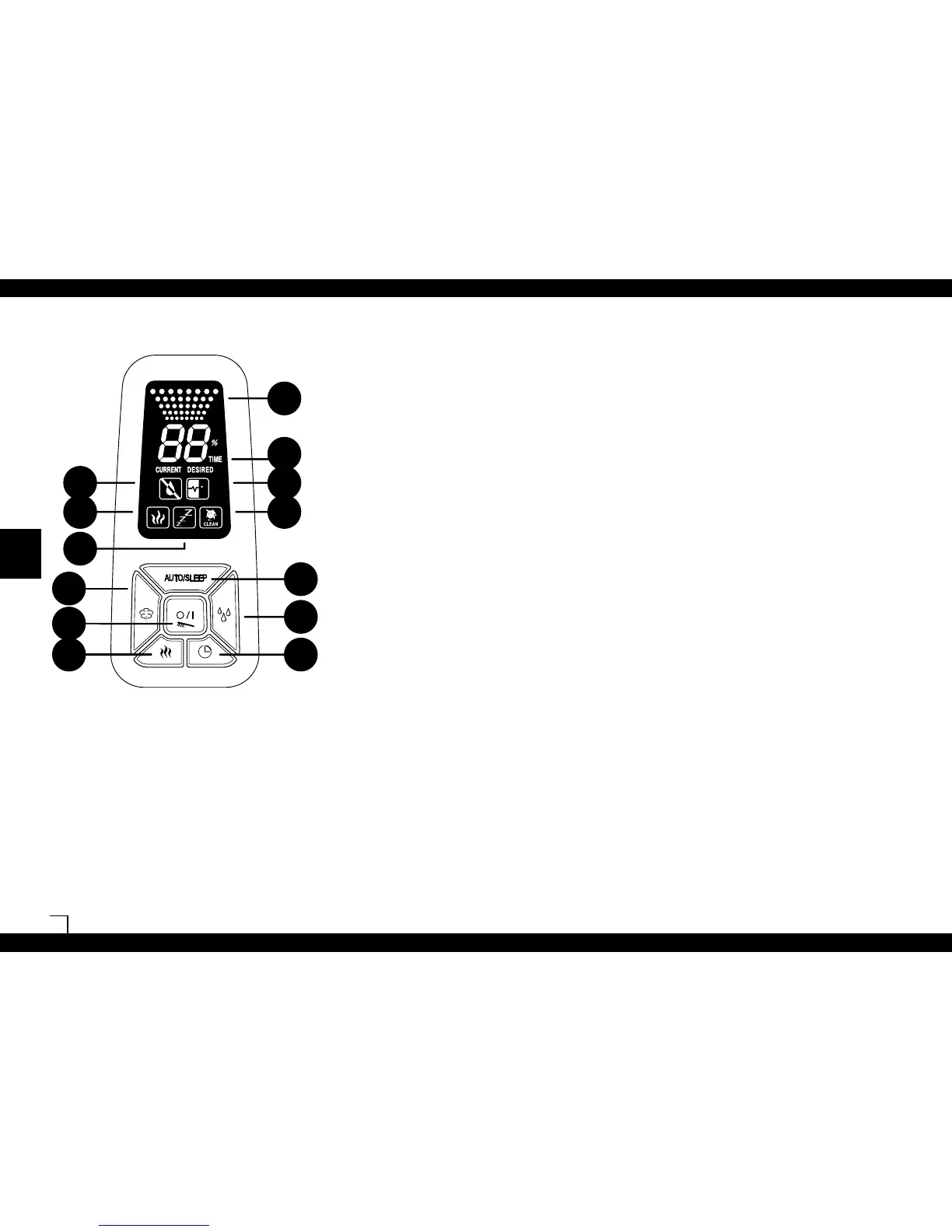 Als u op de toets B drukt, stelt u de gewenste vochtigheid