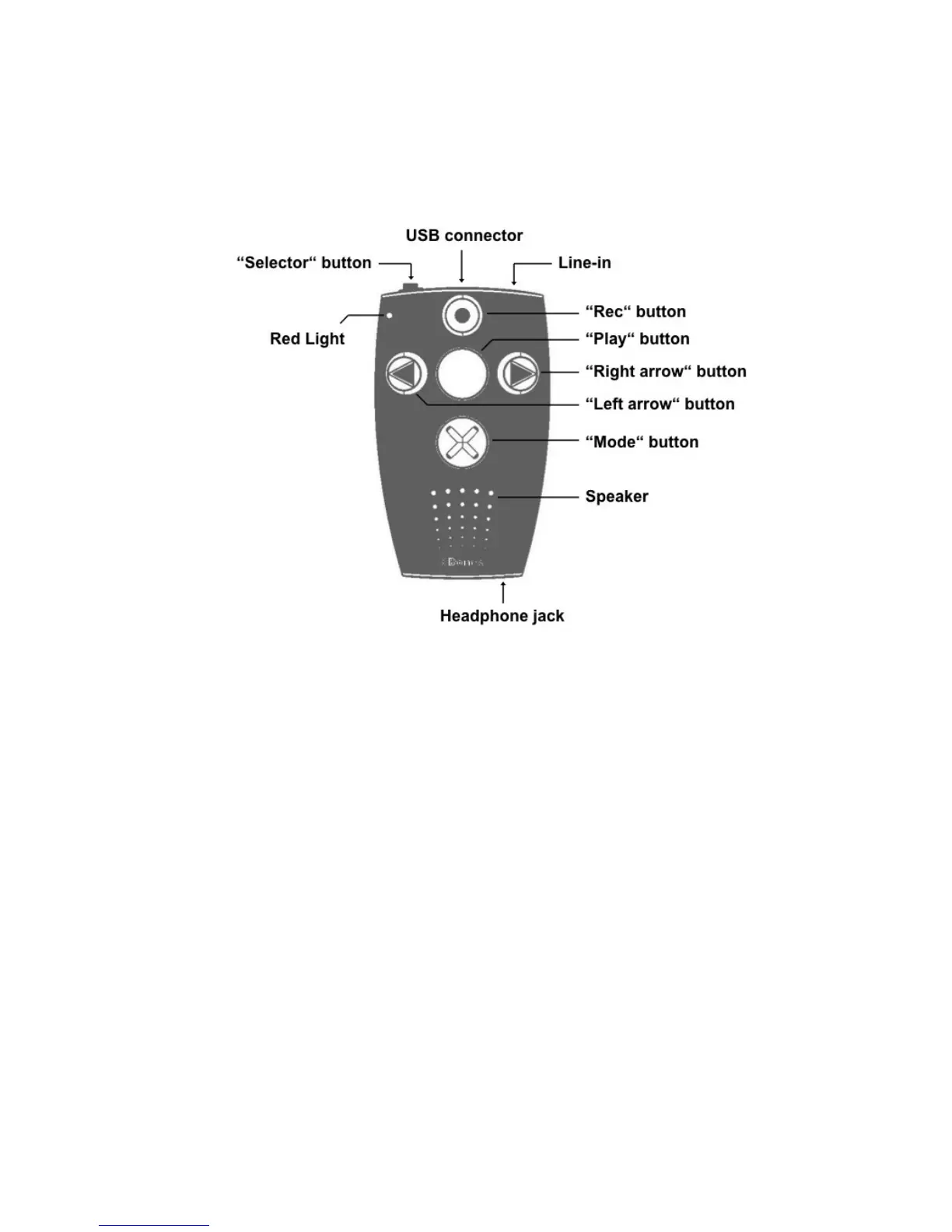 Above the “Play” button is the “Rec” button. This button is marked with a tactile circle.