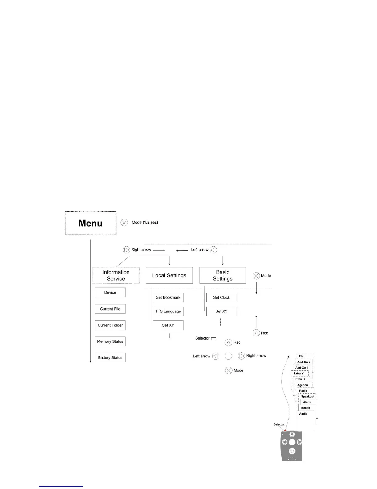 the horizontal axis. To exit the menu, you can always press "Selector". If you do not press any button