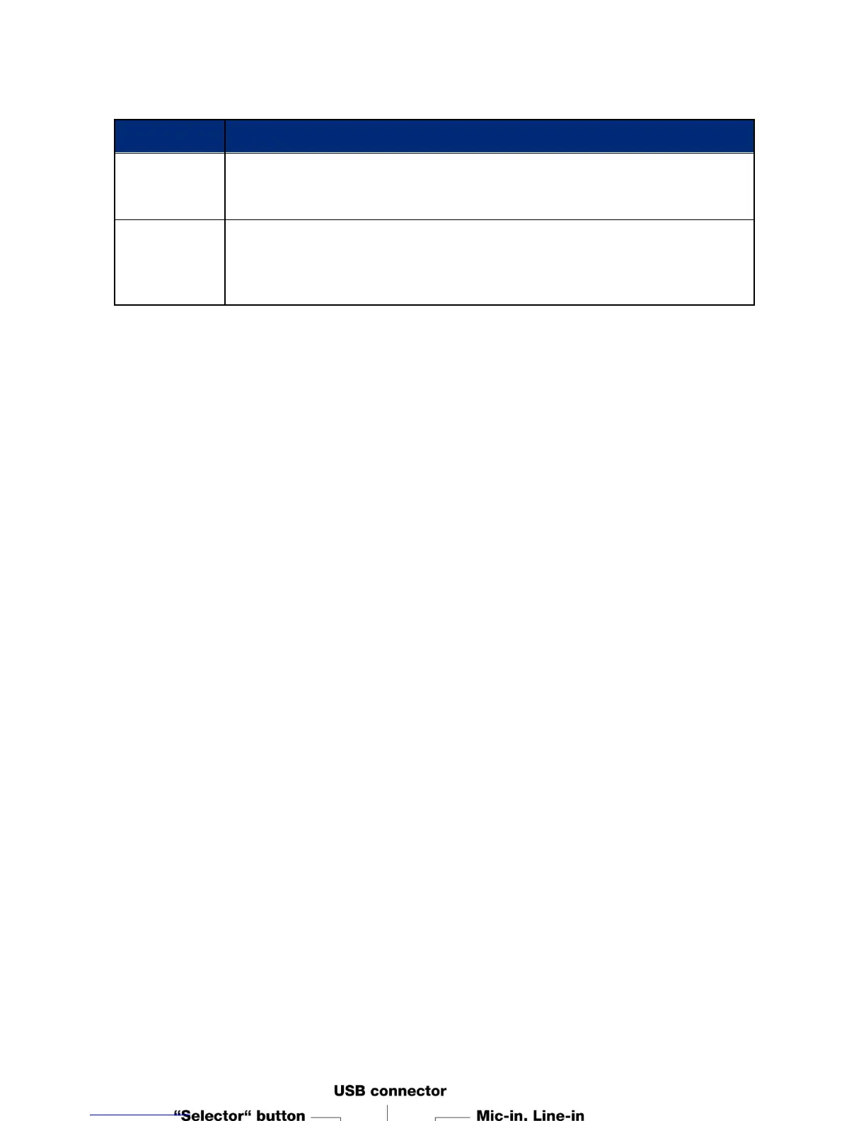 This chapter describes the buttons, connectors and other tactile areas.