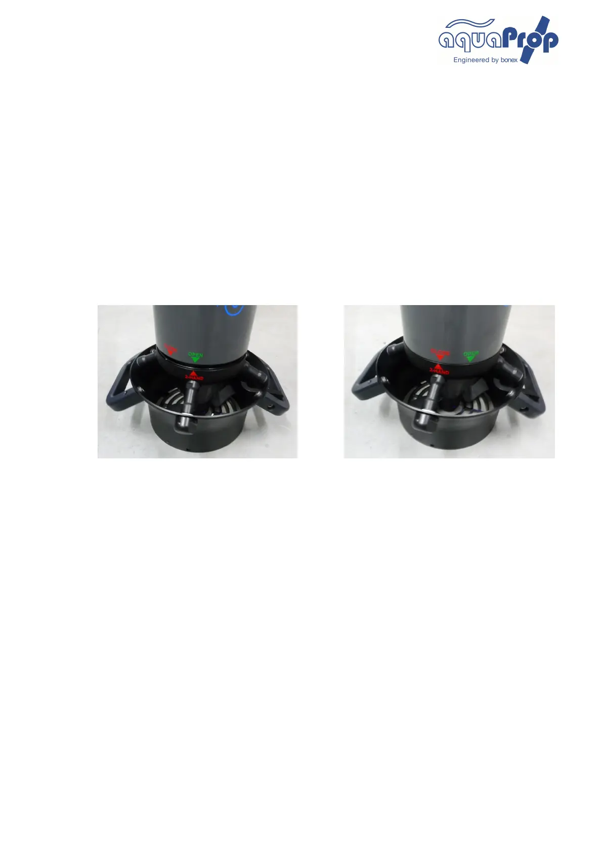 the propeller nozzle on a flat surface and turn the housing upper part of the system handle. Hold it firmly to the lower