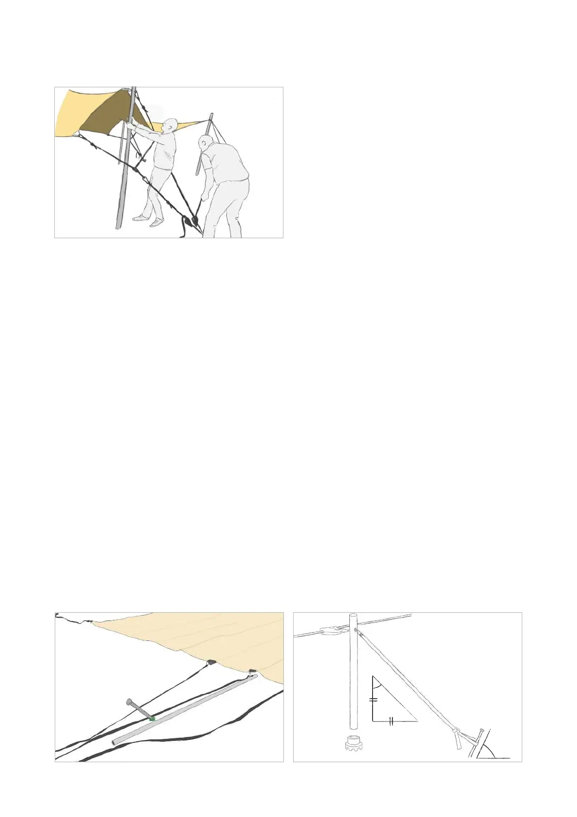 Les sangles de tension sont fixées au moyen du piquet dans le sol. Les piquets fournis sont adaptées
