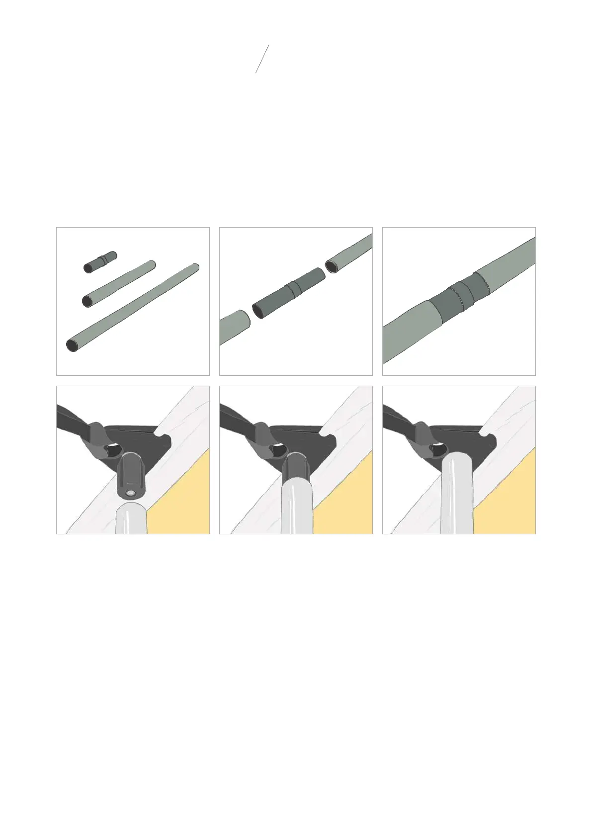 Only for - 10 m: Later on the side clamps will slide into the connected poles as shown below (see