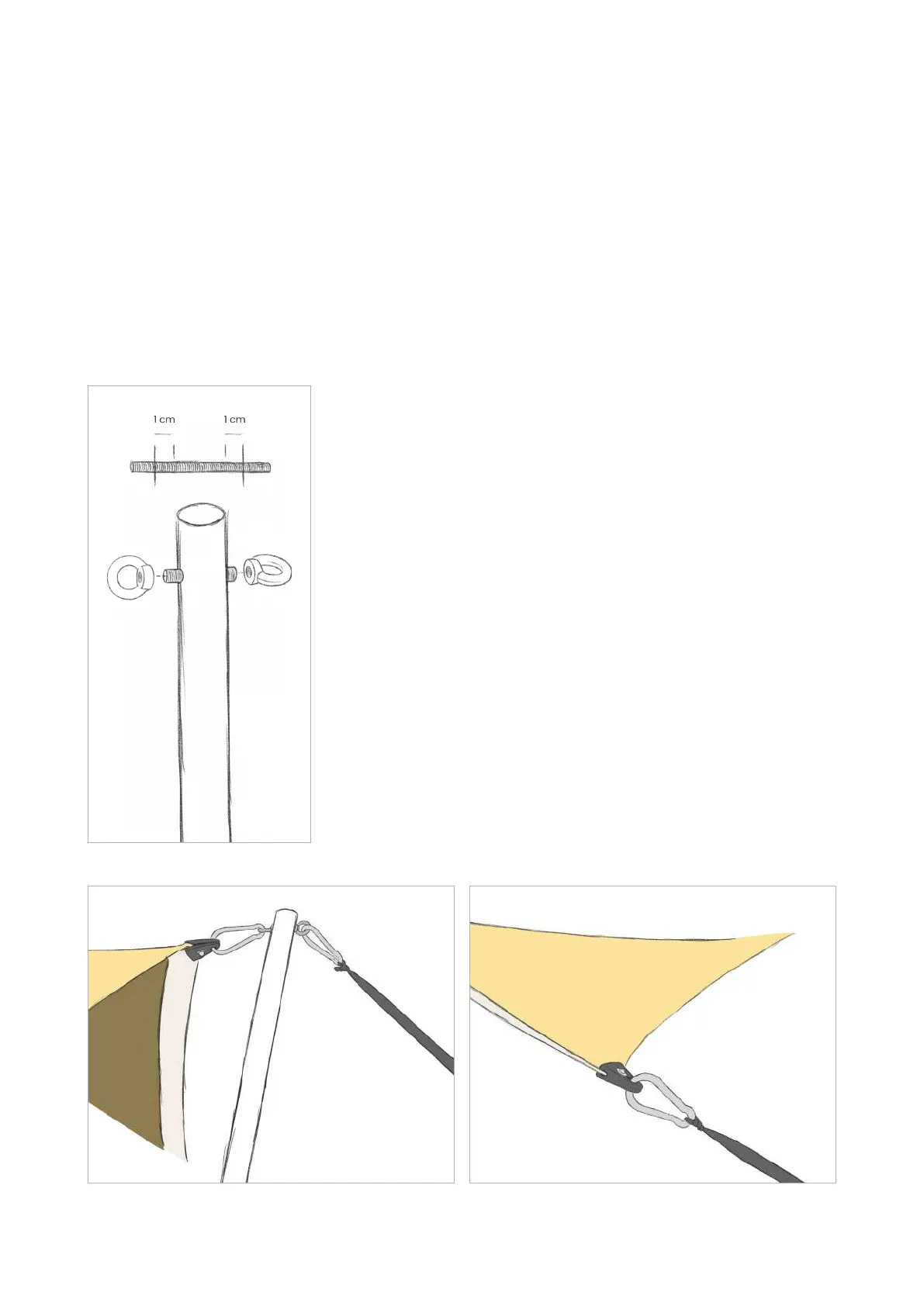 1.1.1: PREPARING THE STURDY ALUMINIUM POLES (Ø 60 MM): CARABINER + EYEBOLT &