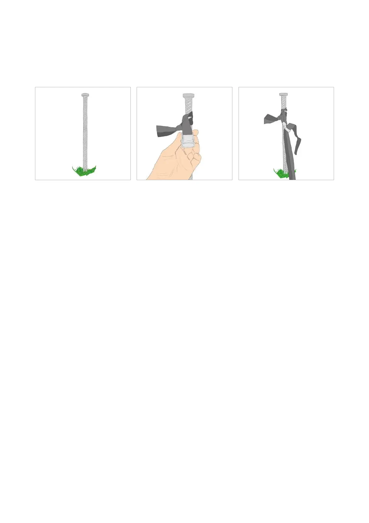 Cuando la piqueta esté clavada al suelo, anuda alrededor de la piqueta el trozo corto de la cuerda