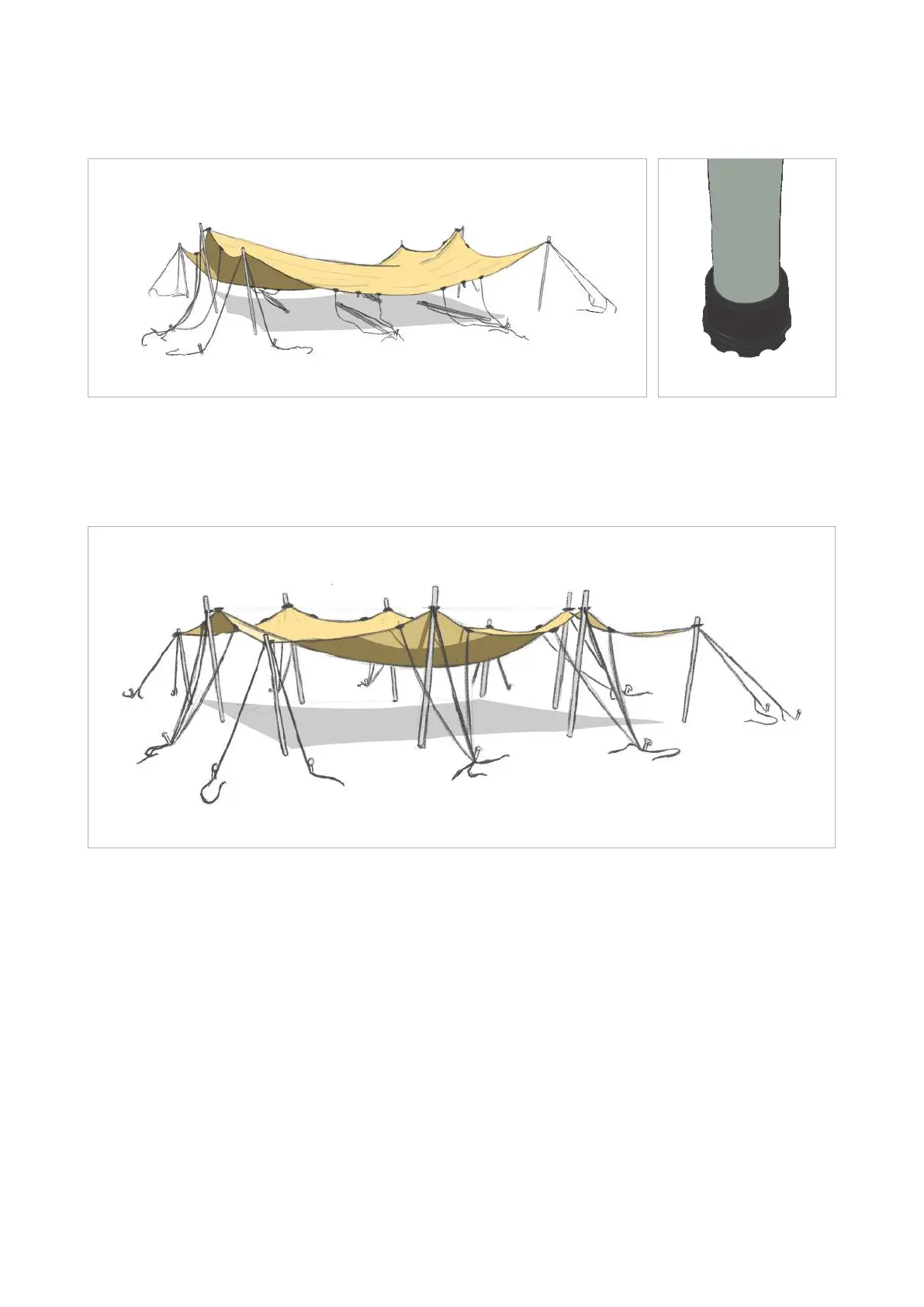 Gracias a la amplia superficie del tope para postes (XL), la presión en la carpa se distribuye mejor
