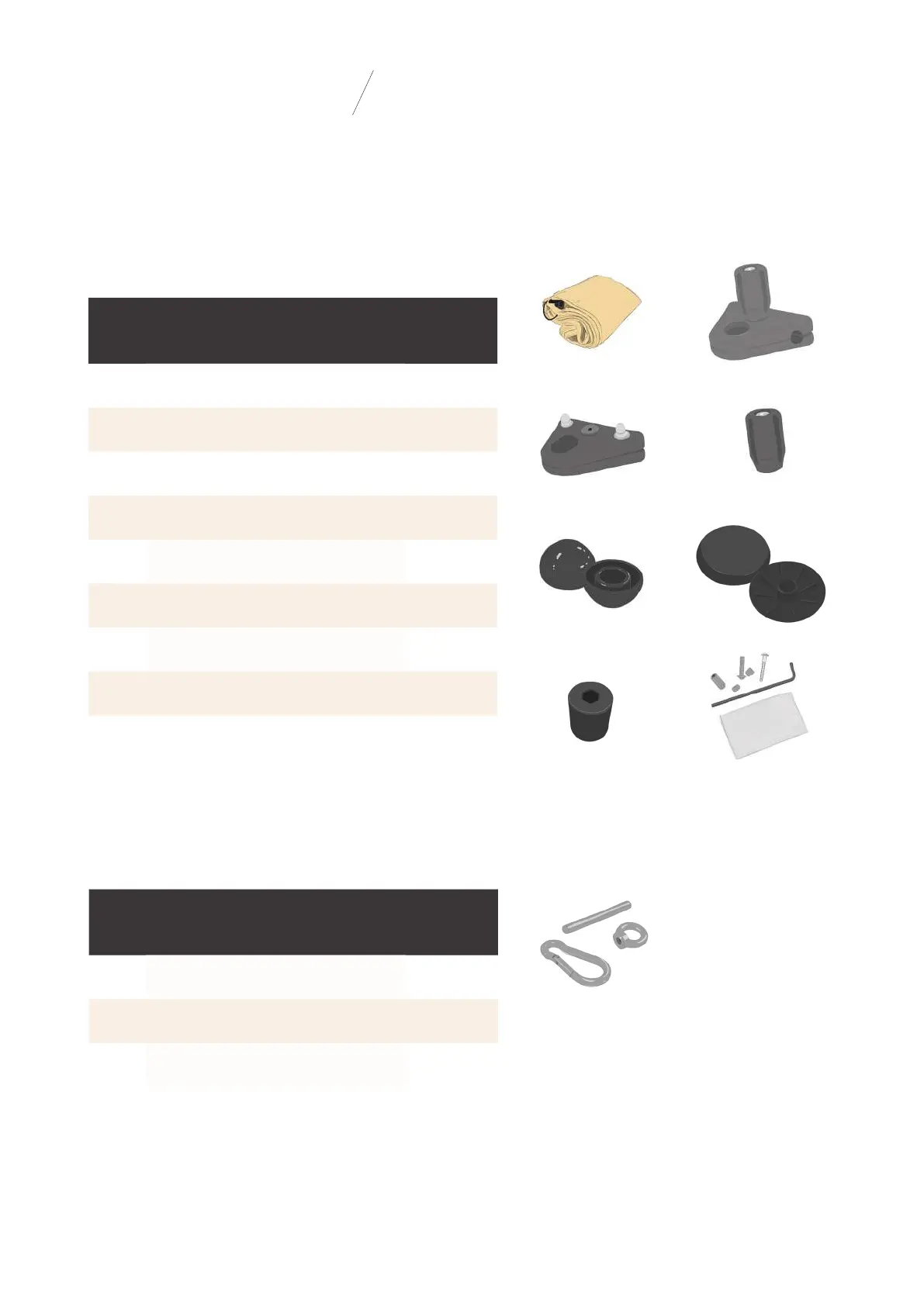 *Gripzakje #1 bevat: zeskantbout M8 x 60 (4 x), moer M8 (8 x), verbindingsmoer M8 voor gebruik met houten palen (4 x),