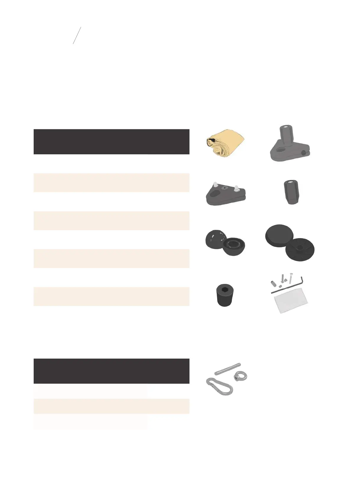 tear aid Patch (1 x), Inbusschlüssel 5 mm (1 x), Holzschrauben (5 x) - Zip-Beutel #3 enthält: Verbindungsmutter M8 (10 x),