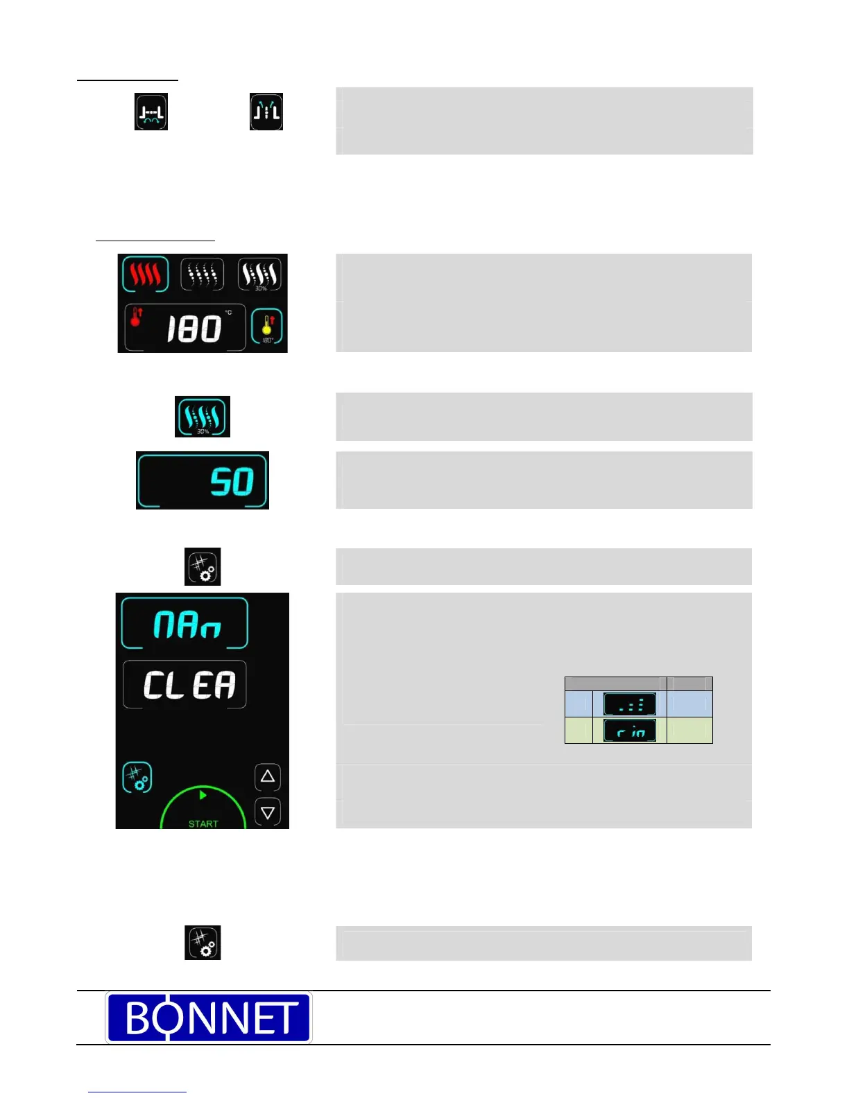 Anzeige von "CLEA" (Reinigung) im Zeitschaltuhr-Feld und Anzeige der Intensität im