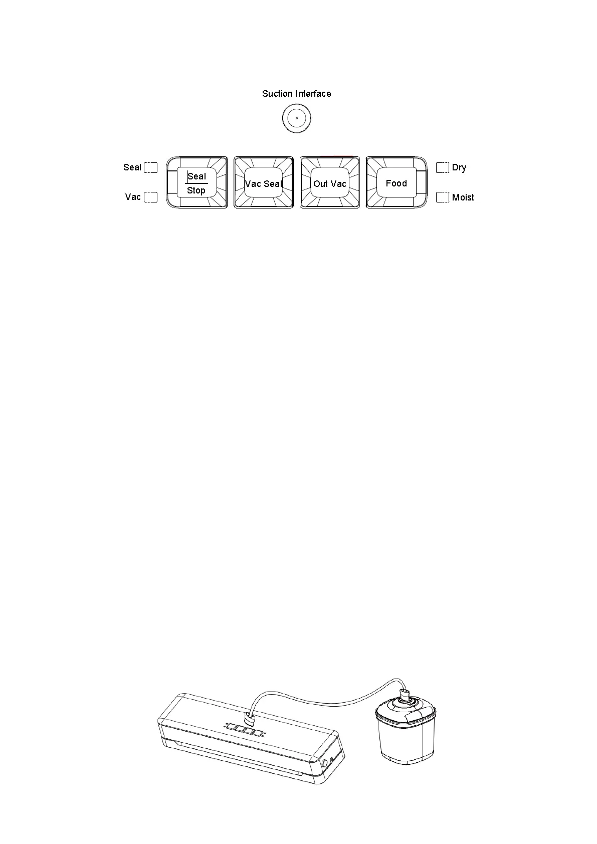 Press this button in standby state, the machine will start vacuuming, then sealing the