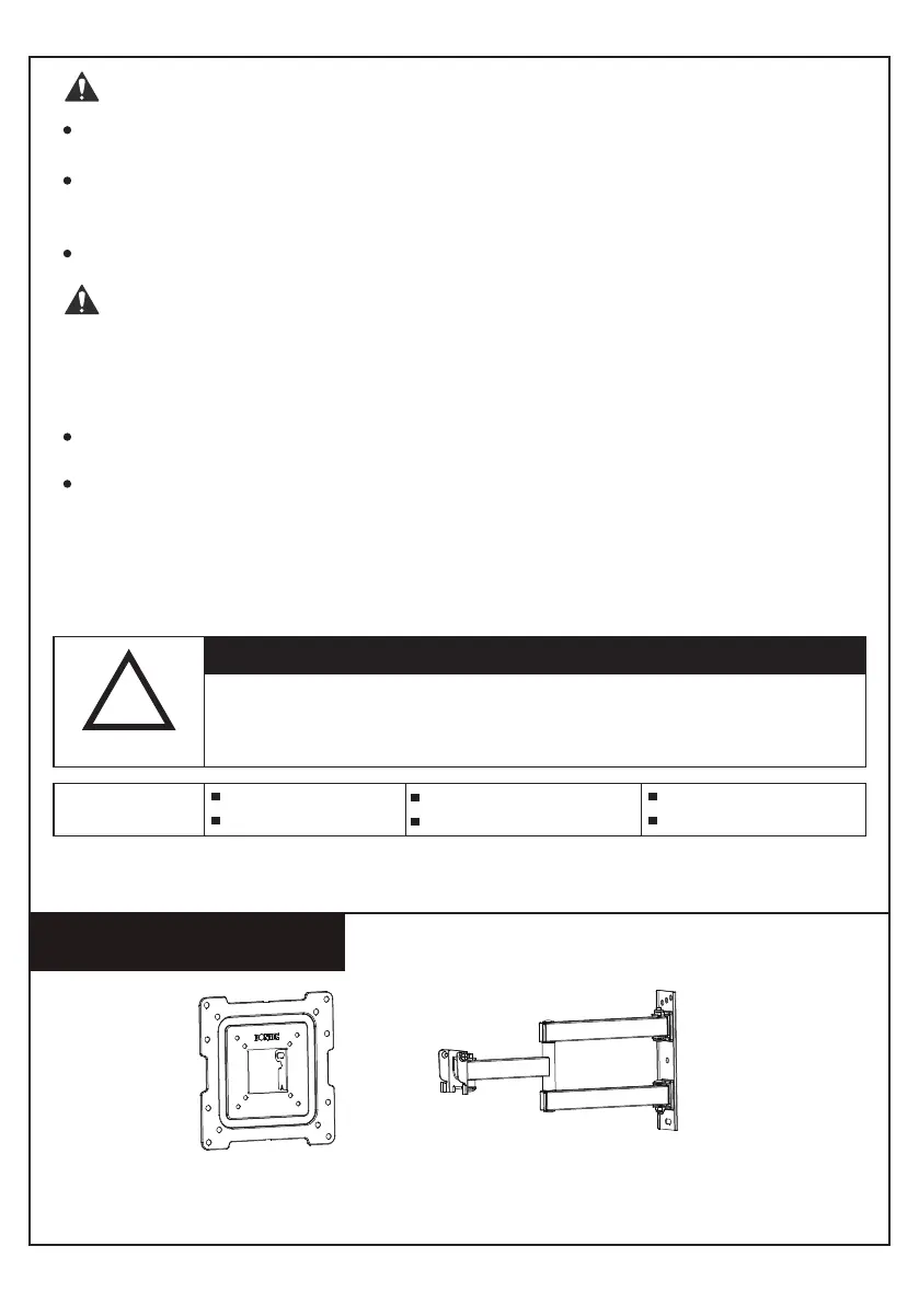 This TV mount must be securely attached to the vertical wall. If the