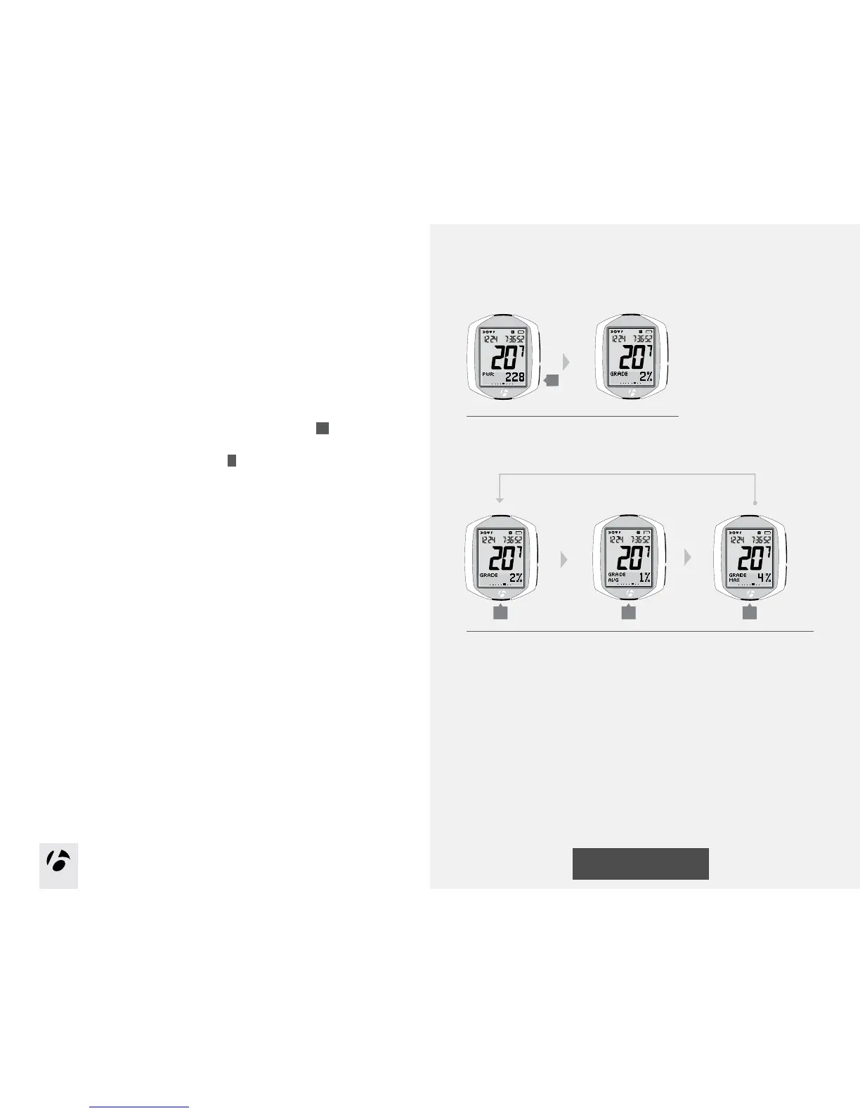 1. To switch the secondary display from Power to Grade, press