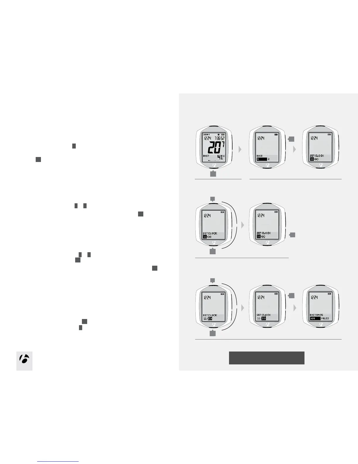 To save the clock settings and proceed to the set Distance Units, press