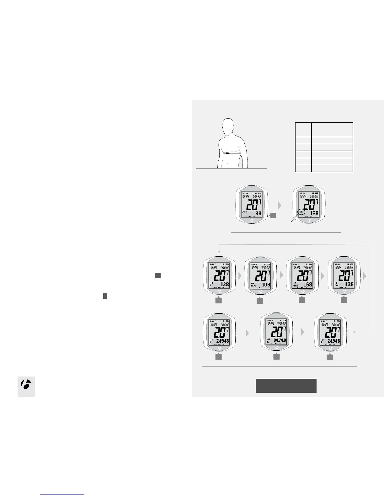 1. To switch the secondary display from Cadence to Heart Rate, press