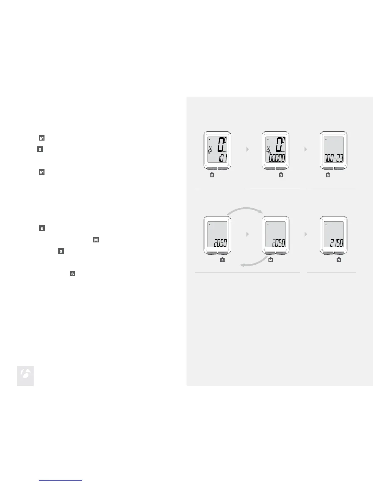 To program the second wheel size, press Set to change the preferred