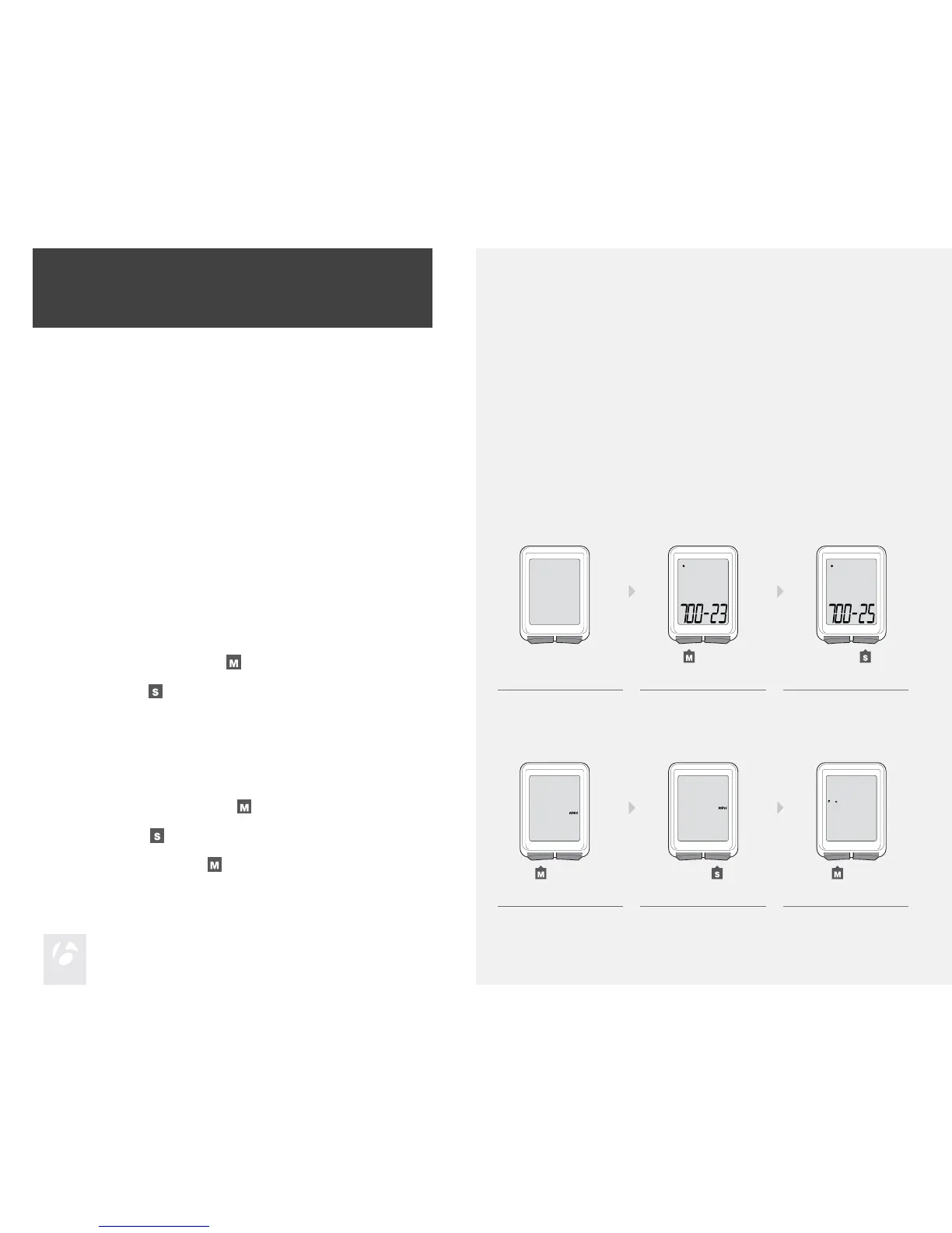 After you install the battery, you can program the wheel size and units.