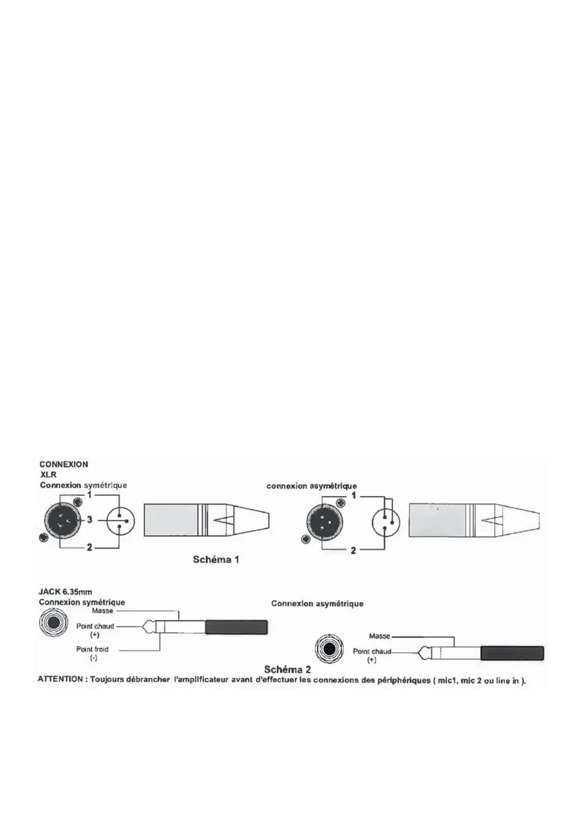 cause d’une protection. Il faut attendre 2 ou 3 secondes. Pour éteindre l’amplifi cateur, il faut appuyer une nouvelle