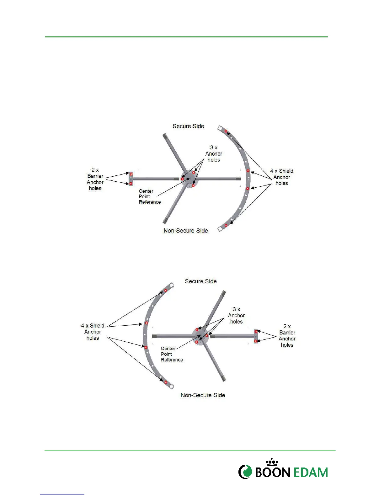 layout as shown below. Anchor hardware is supplied with the installation kit containing the