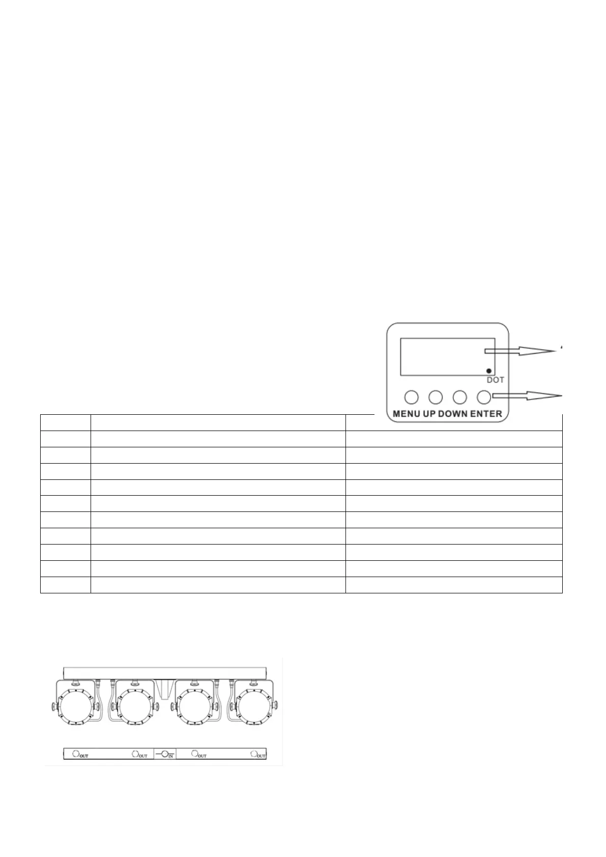 1) Ajuste de la dirección DMX: Apriete en la tecla MENU. Cuándo d001-d512 se indica, apriete las teclas