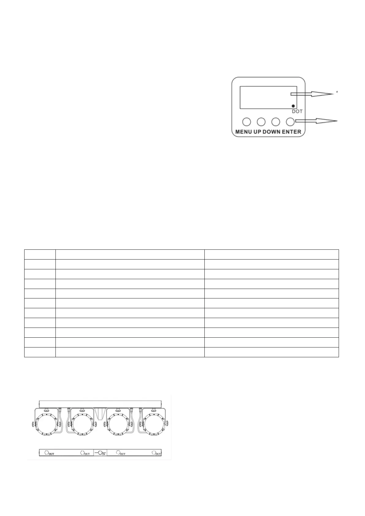 2) Réglage de l’adresse DMX: Appuyez sur la touche MENU. Lorsque que d001-d512 s’affiche, appuyez sur les