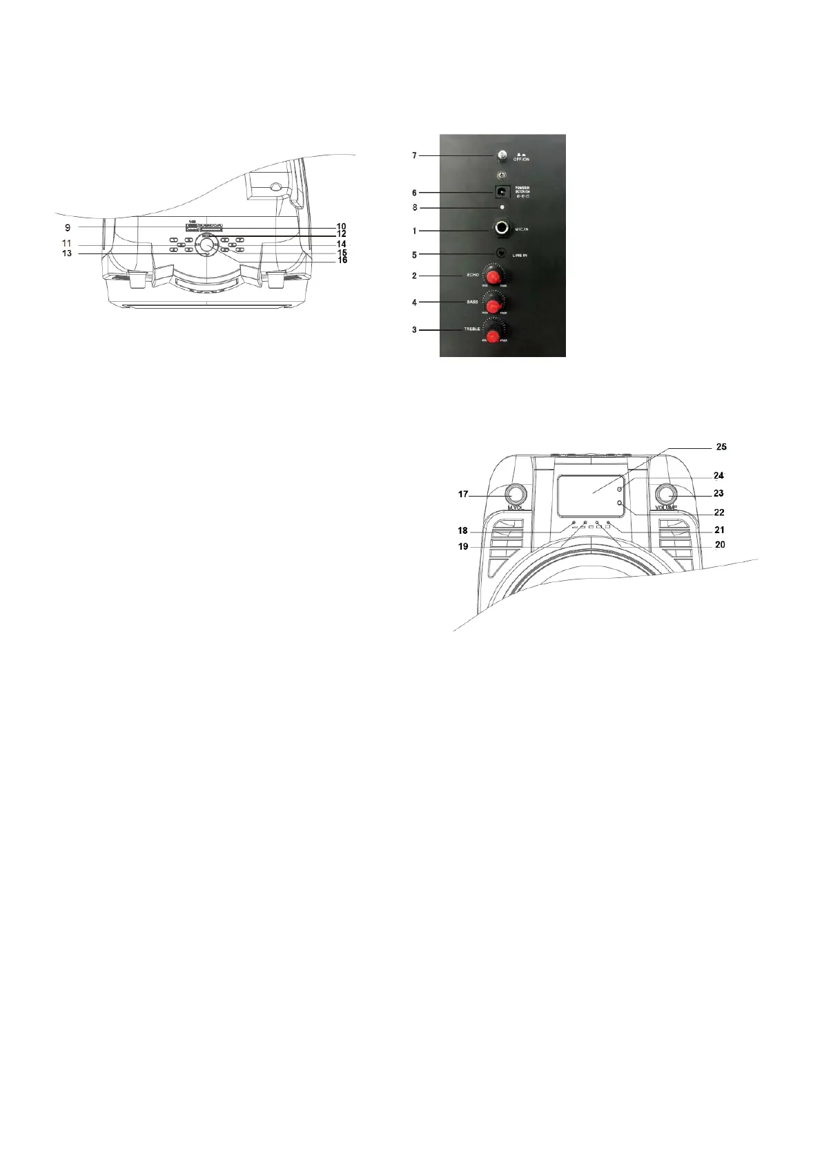 24. Betriebs- und Bluetoothanzeige (blinkt im Bluetooth-Betrieb)