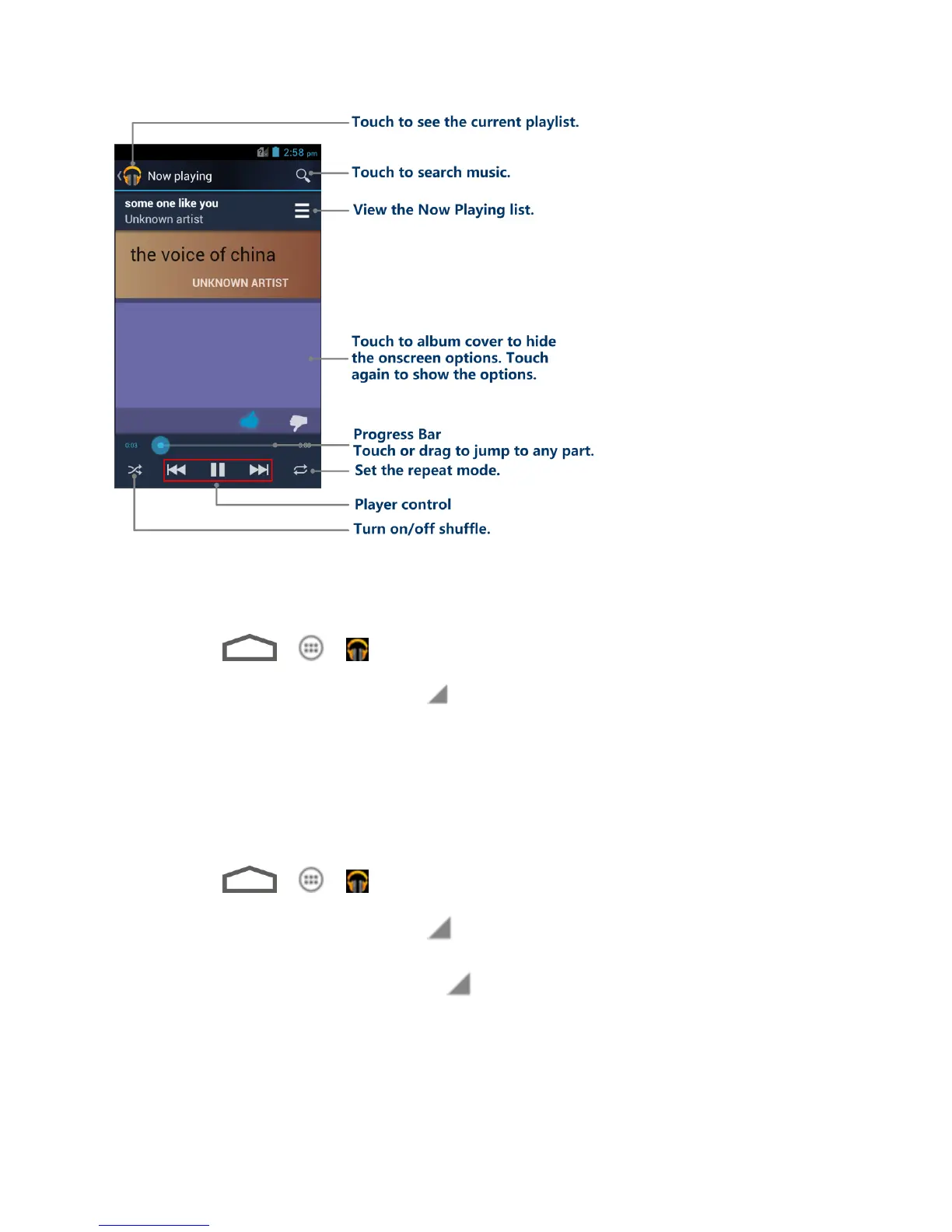 2. Touch the triangular menu button to the right of an album, artist or song, and touch