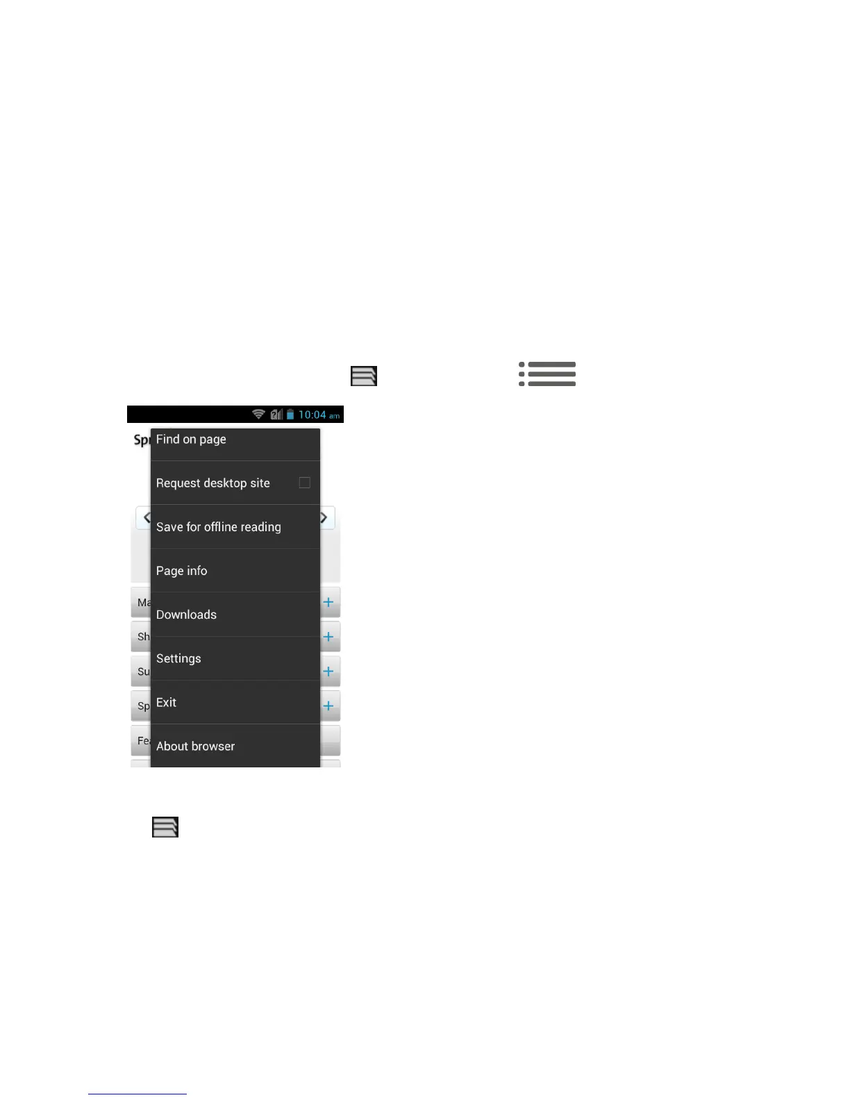 The browser menu offers additional options to expand your use of the Web on your phone.