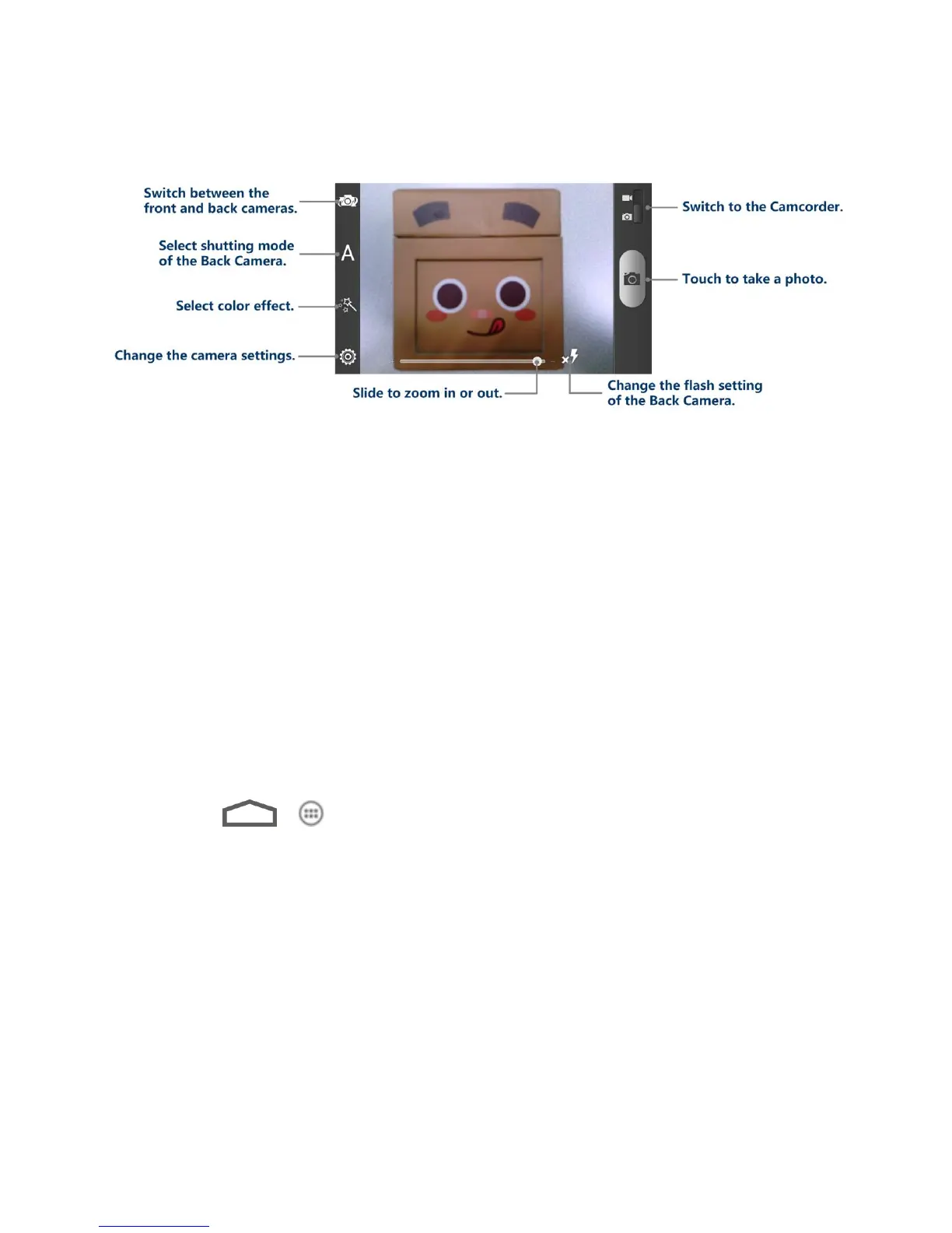 Before taking a photo or video, you can first use the onscreen zoom bar to zoom in or out of