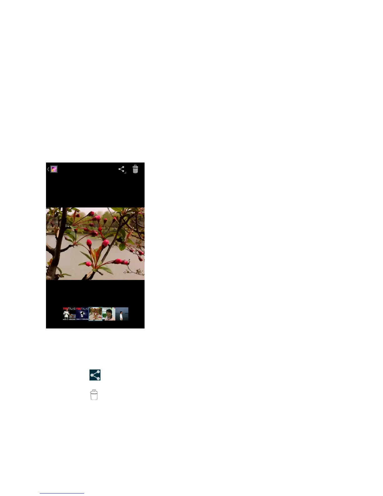 ● Touch a thumbnail at the bottom of the screen to view other photos or videos in the