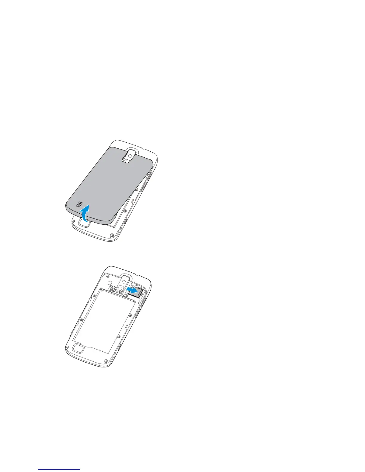 1. With the phone turned off, insert a coin or other flat object into the slot at the bottom of