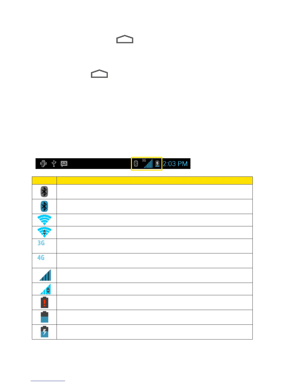 the right side and notification alerts on the left. To view notification alerts, touch the status bar