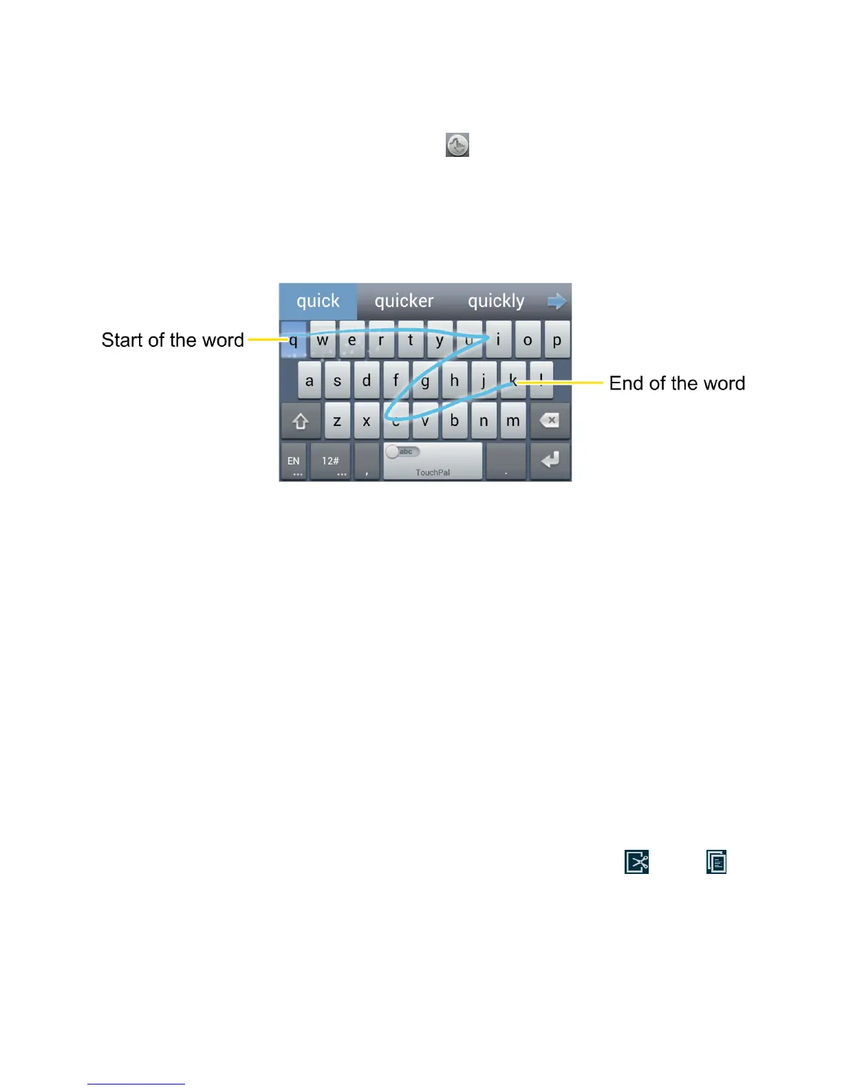 ● Lift your finger at the end of the word. A space is added automatically when you begin to