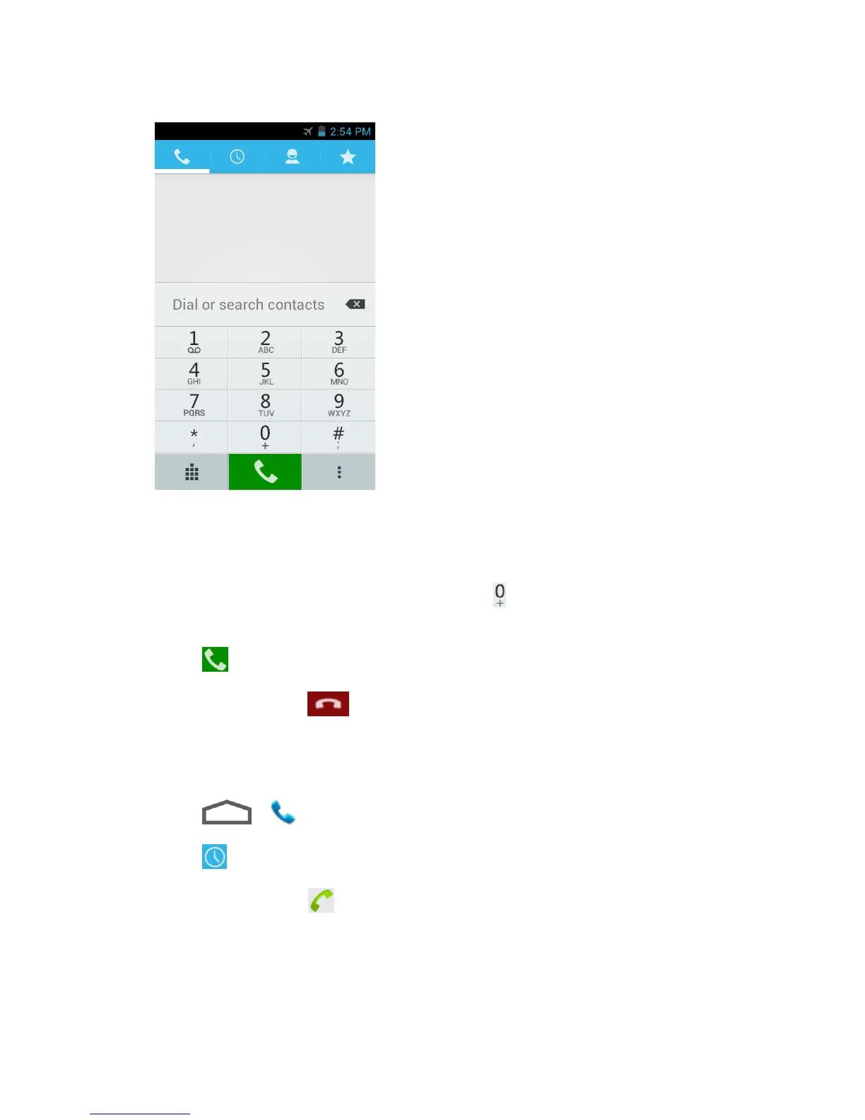 To make an international call, touch and hold to enter the plus (+) symbol. Then