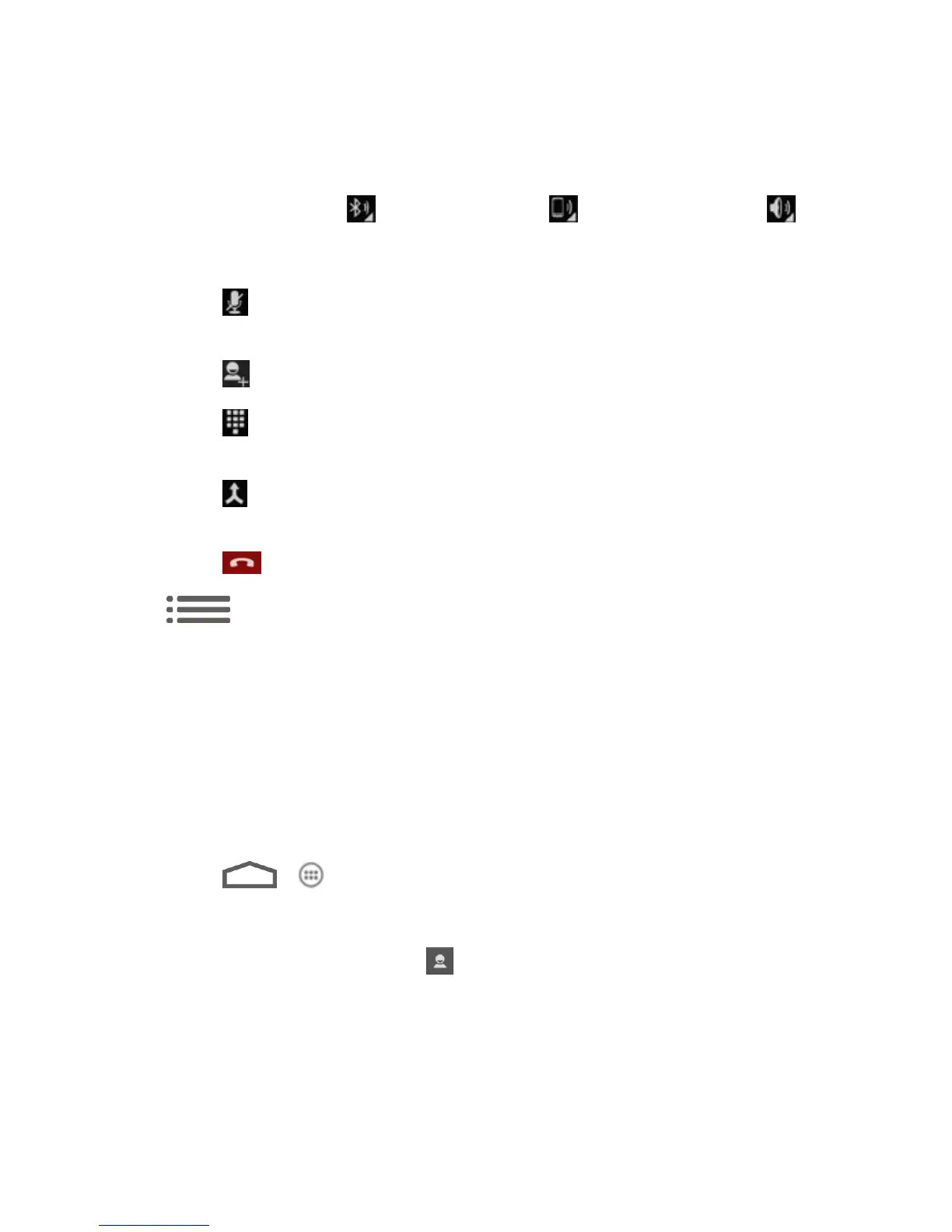 Touch one of these icons and select Speaker, Handset earpiece, or Bluetooth to