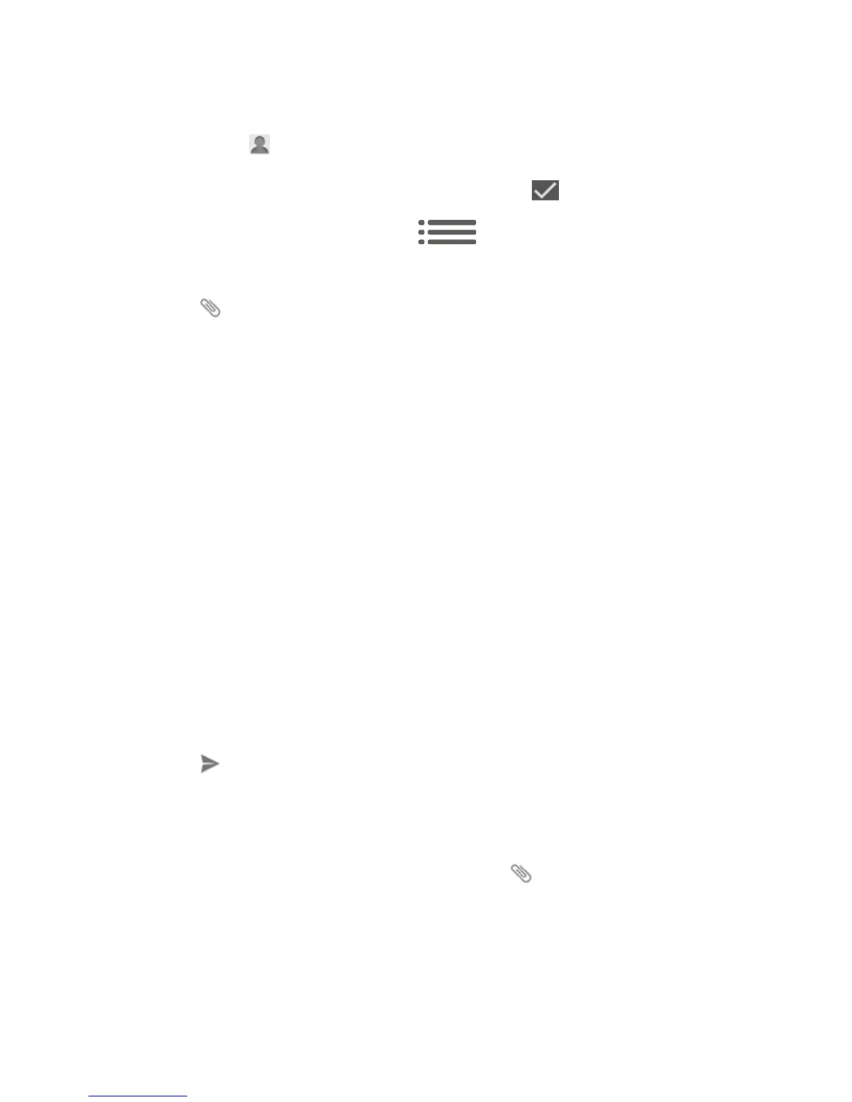 5. Touch to open the Attach window. Select from the following file attachments: