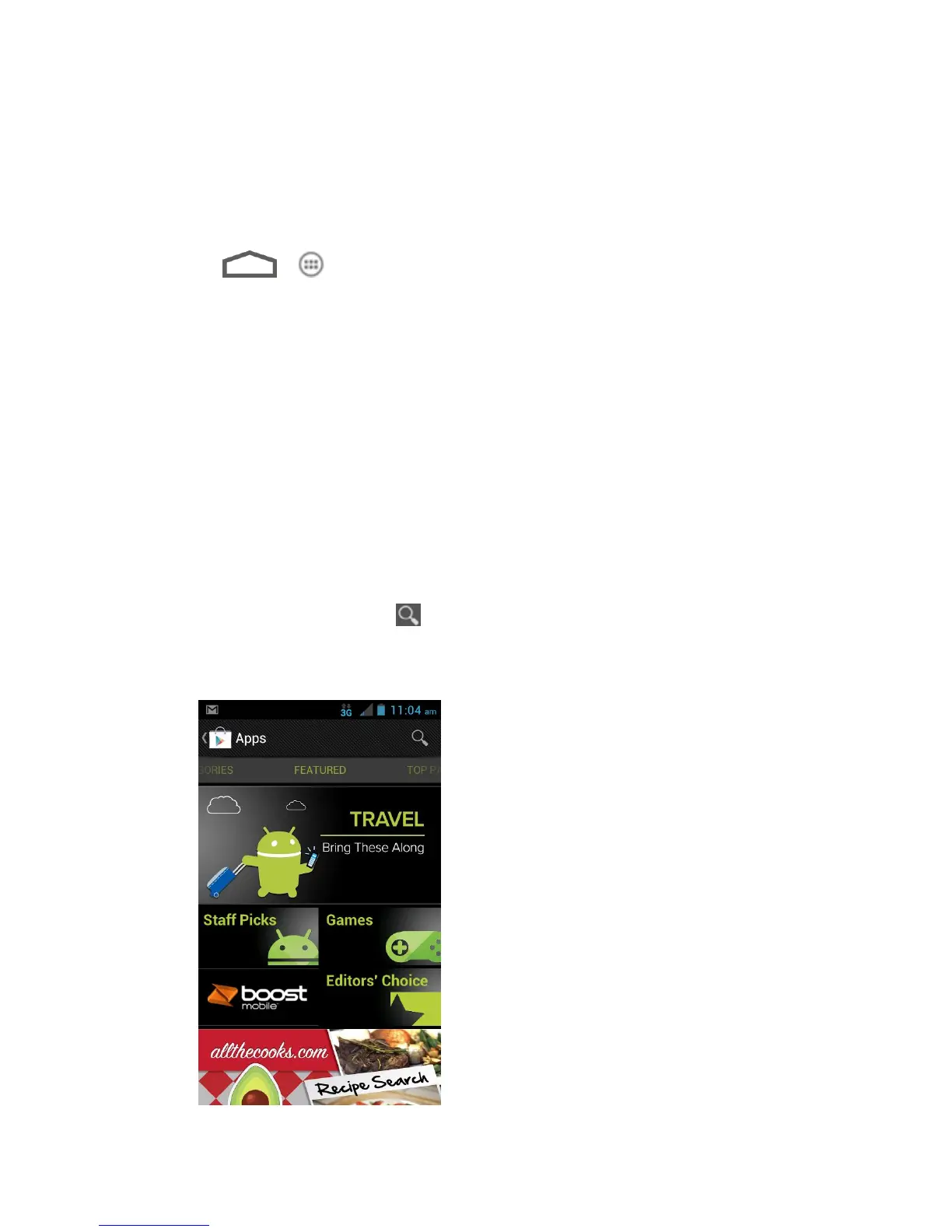 Browse apps recommended by Boost Mobile. First, touch Boost Mobile, and then