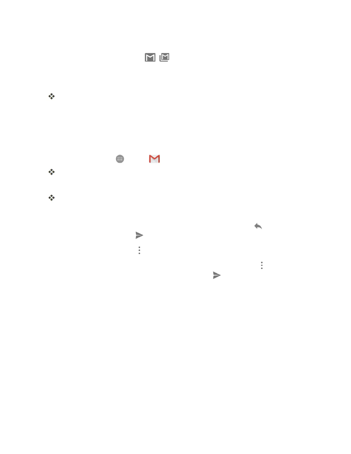 Forwarding Gmail Messages:WiththeGmailmessageopen,tapOptions >Forward,