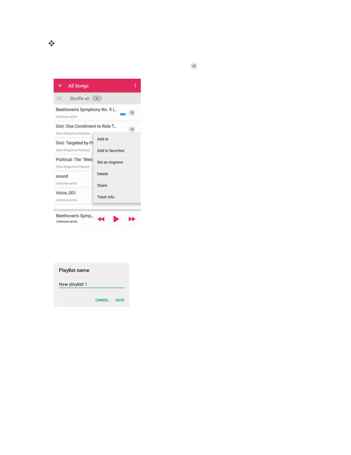 Findthemusicfileyouwanttoputinaplaylist.Tap nexttothesongtoopenalistofoptions.
