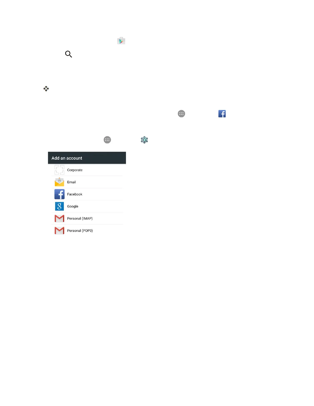 Fromhome,tapApps >Settings >Accounts>Add account.