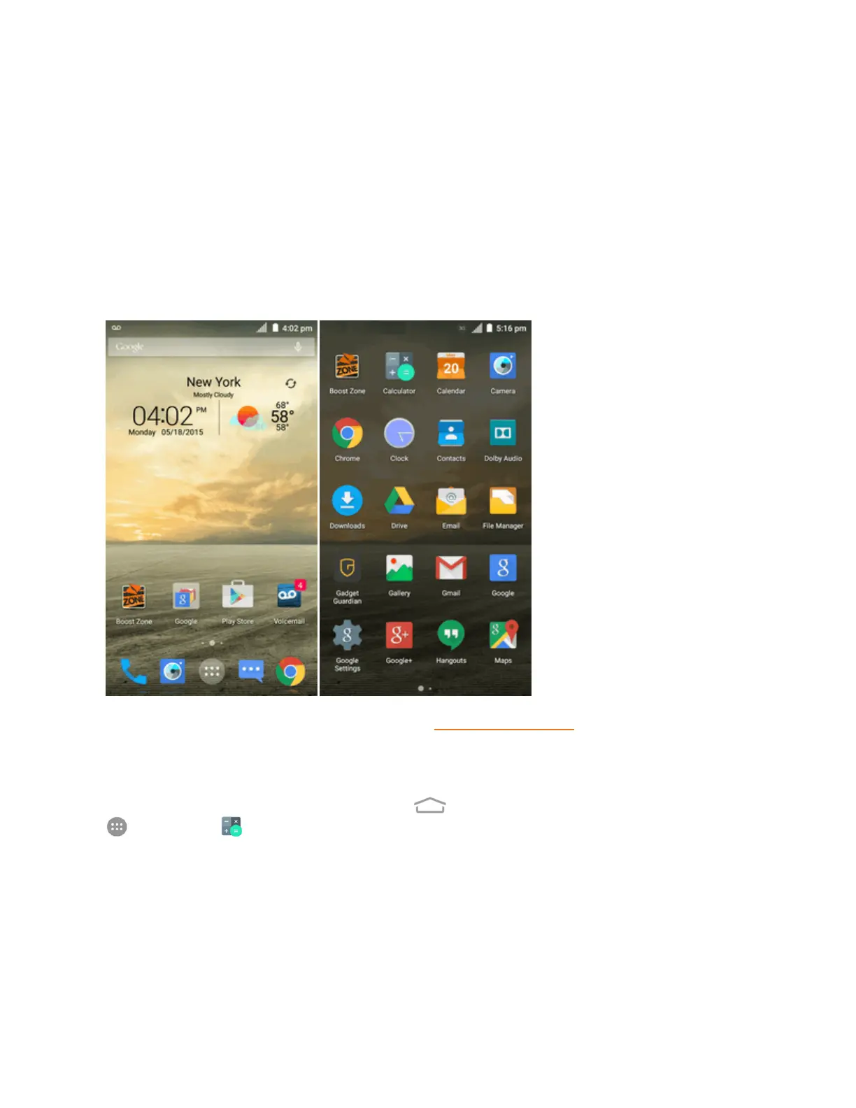 Mostofyourphone’soperationsoriginatefromthehomescreenortheappslist.