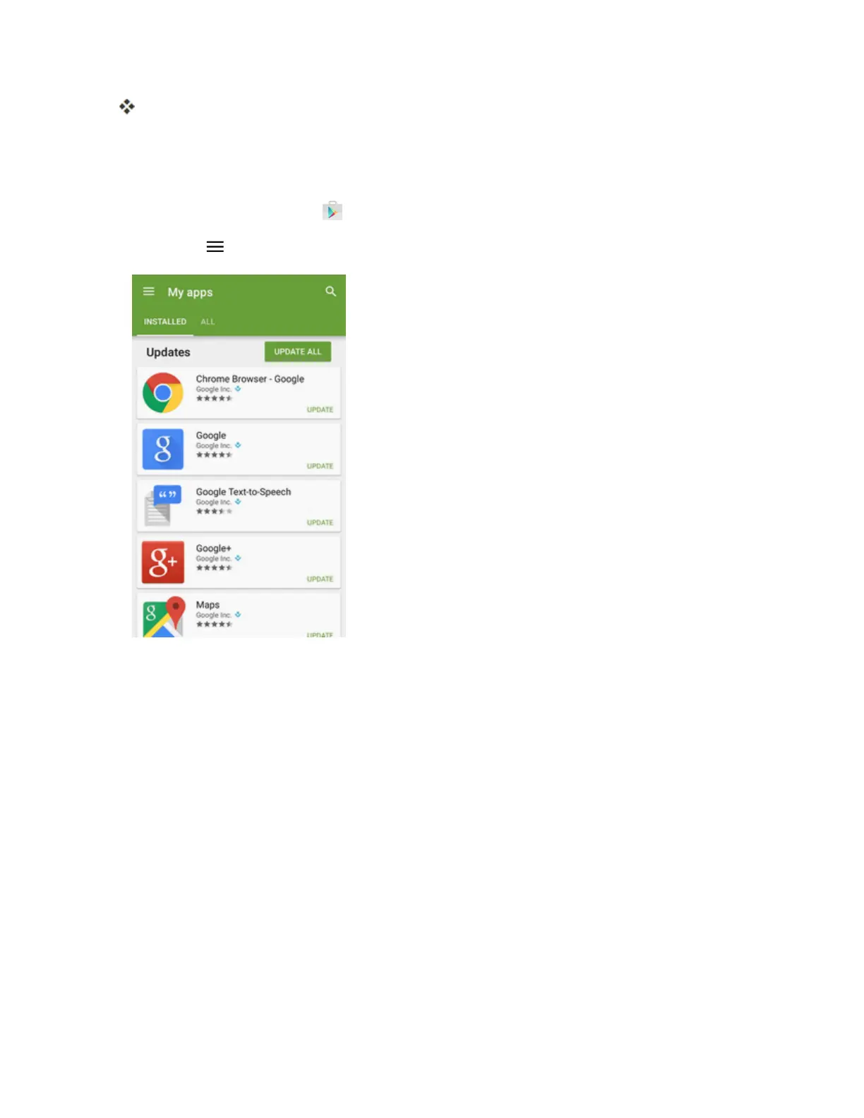 Note:YoucanalsotapUPDATEALLinMyappstoinstallavailableupdatesforallyourapps.