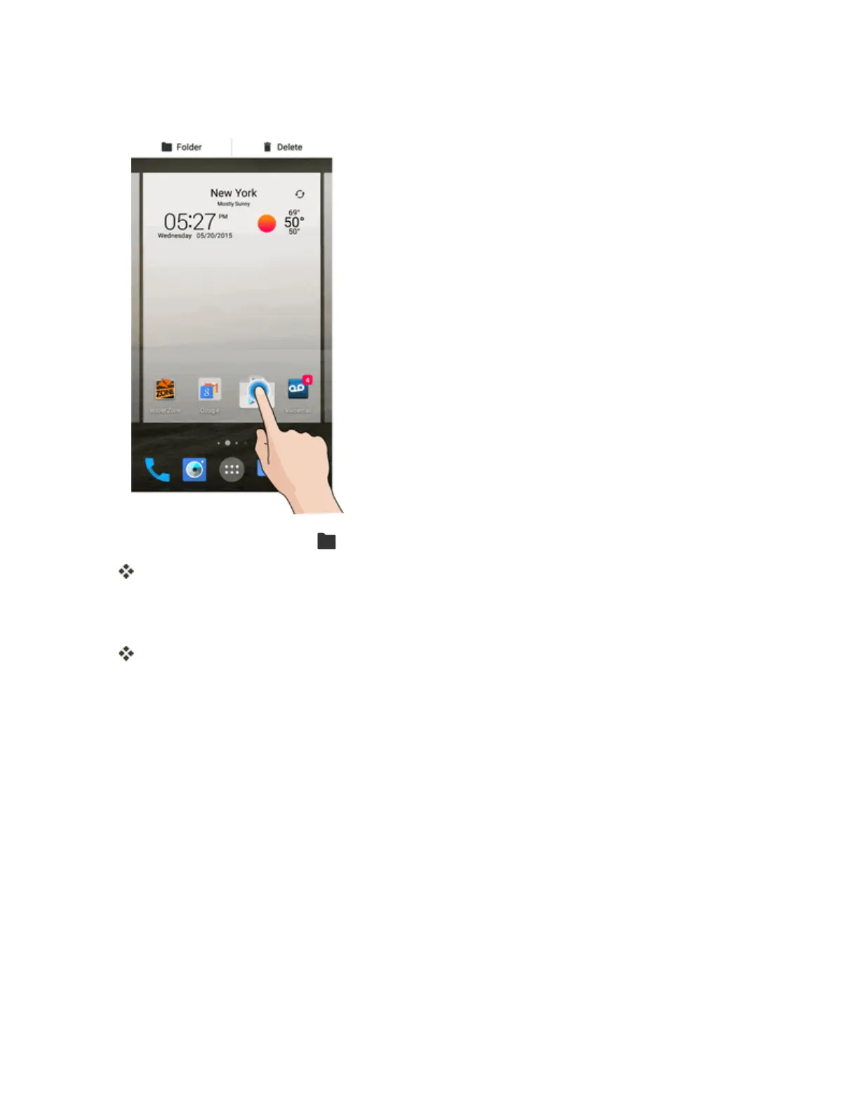 1. Fromhome,touchandholdashortcutyouwanttoplaceinafolder.
