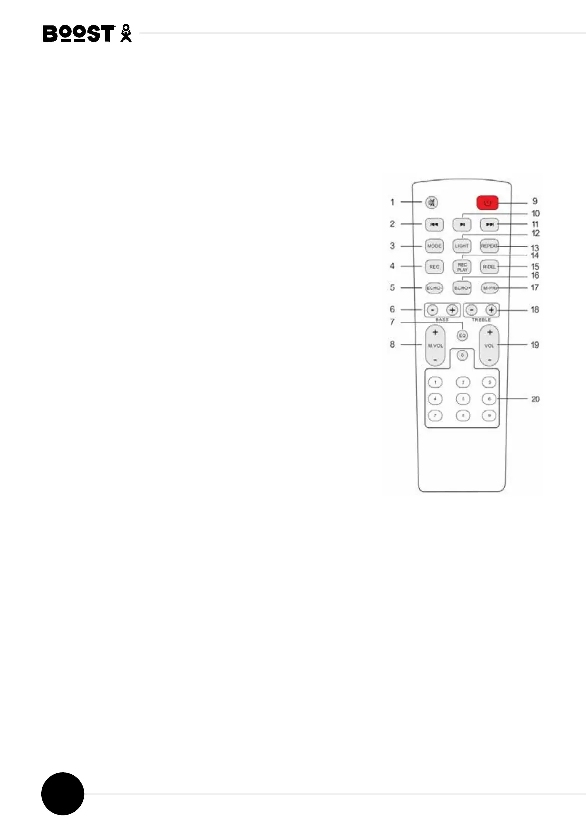 20. Touches numériques: en mode USB / TF, entrez directement le numéro du titre souhaité.