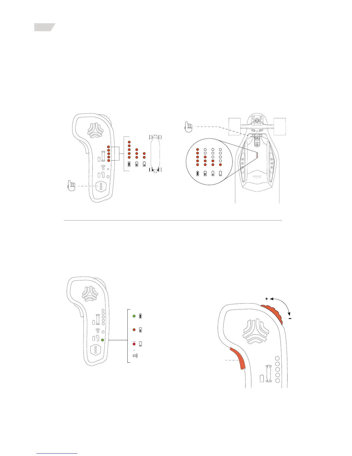 (1x). Die LEDs auf dem Board zeigen den Akkustand an.